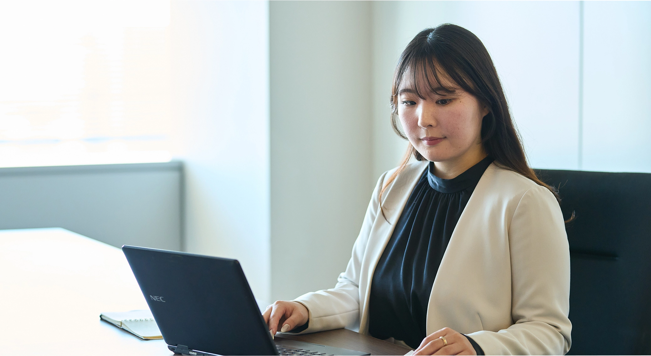 学生時代は経営学部に所属しており、金融業界を中心に就職活動を行っていました。中でも幅広い業界のお客様に対し、柔軟なソリューションを提案できるリース業界を志望。「リース」というのは聞き馴染みがないかもしれませんが、PCや航空機、自動車など、実は私たちの身の周りにたくさん存在しています。NECキャピタルソリューションは、官公庁・ICT領域を強固な基盤としつつ、不動産や再生可能エネルギー、金融プロダクトといった新たな領域もチャレンジしている点が魅力的でした。また社員全員の顔と名前が一致する規模で、アットホームな雰囲気でありながら、若手のうちから大きな裁量を持って新しいことに挑戦できると感じたため、入社を決めました。