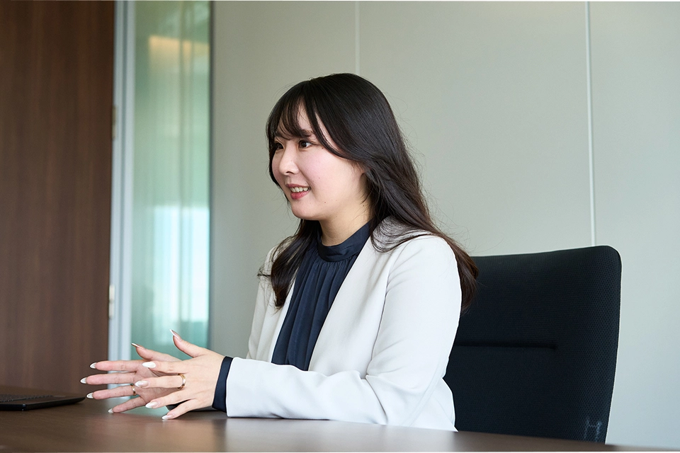 新しい環境でよりチャレンジングな仕事に携わりたいと考え、社内公募制度(※)を活用して、部署を異動。将来、当社の事業の柱となる再生可能エネルギー領域において、発電所への投融資や、太陽光・風力・蓄電池の開発事業などに取り組んでいる。
